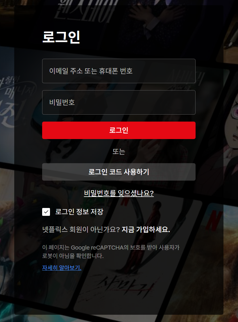 1. 넷플릭스 앱 또는 pc로 홈페이지에 접속합니다.