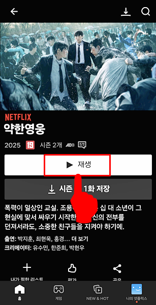 2. 앱 메인 화면에서 19세 이상 관람 가능한 콘텐츠 중 아무거나 하나를 선택합니다.