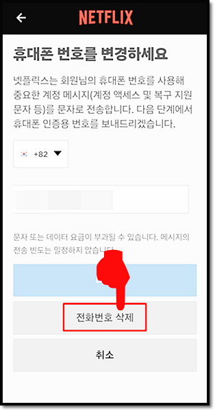 "이 전화번호는 이미 넷플릭스에 등록되어 있습니다"라는 메시지가 나온다면, 계정에서 휴대폰 번호를 변경해 주셔야 합니다.