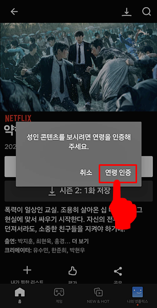 - 넷플릭스 앱 또는 pc에서 로그인 후 19세 이상 관람 콘텐츠를 선택하여 바로 인증하는 방법