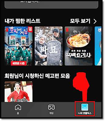 1.넷플릭스 앱 화면 하단에 있는 나의 넷플릭스 클릭